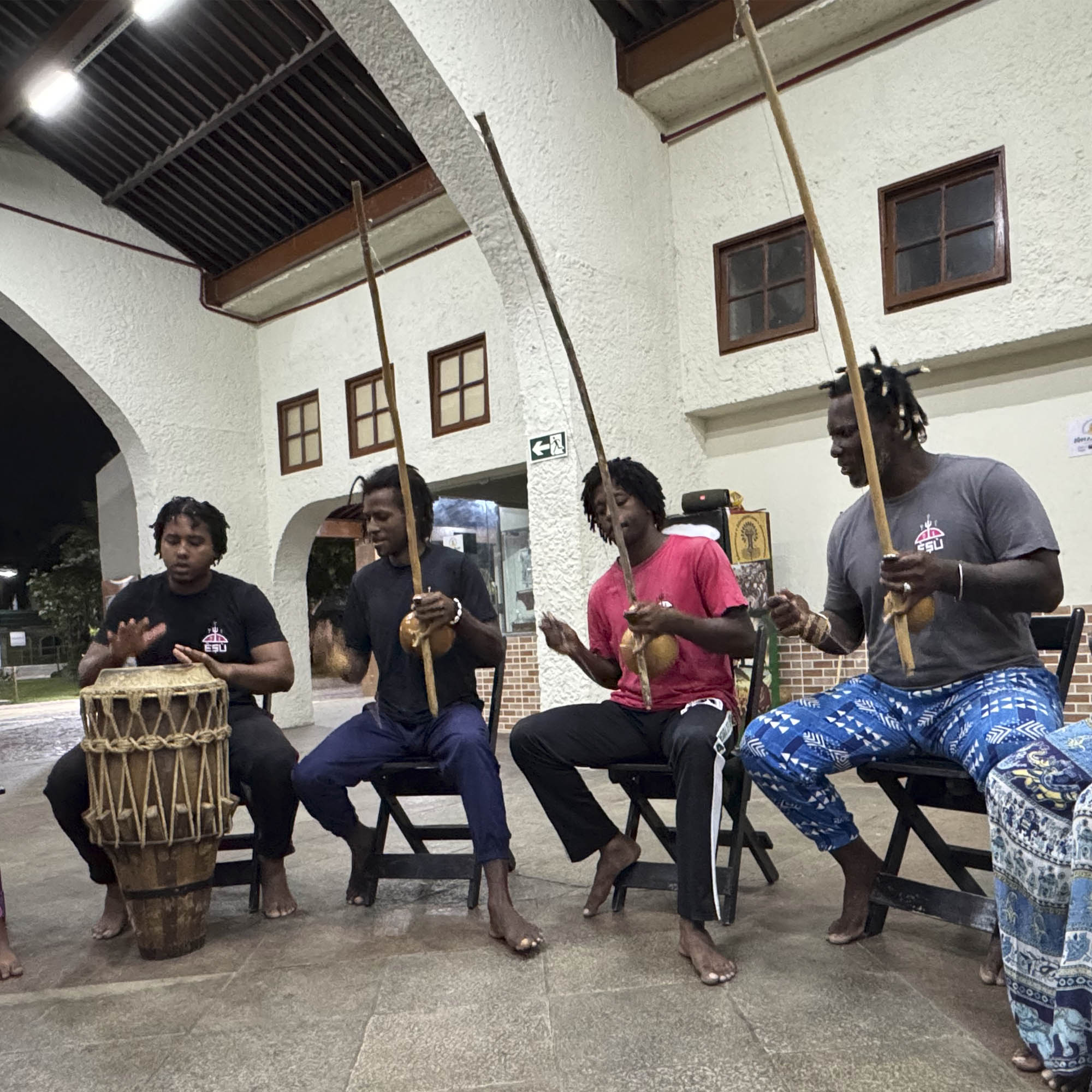 Musicalidade (Berimbau, atabaque, pandeiro, agogô, cantigas).